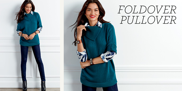 Super soft and surprisingly lightweight, the Foldover Pullover epitomizes the oversized trend that looks spot-on with skinny jeans and a cute blouse peeking out underneath.