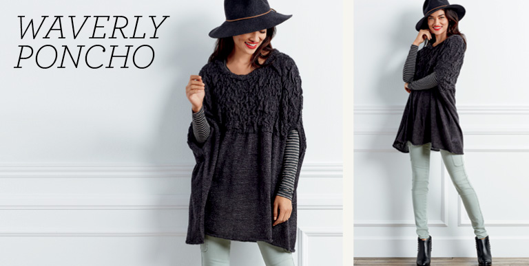 Think of ponchos as the cool-girl alternative to sweaters—cozy, easy, and wear everywhere. Tunic-length to keep you covered, featuring a softly finished edge with a natural curl. Add skinny cargos and a felt hat to go gallery hopping!