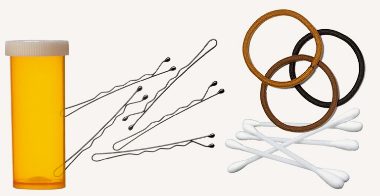 Save old prescription bottles (minus the wrappers!) for Q-tips, bobby pins, and hair ties.