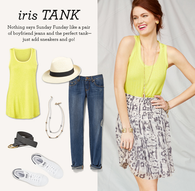 Iris Tank, Mojave Slim Boyfriend, Cinch Belt, Sea Knot Necklace, Straw Panama Hat, Adidas Sneaker