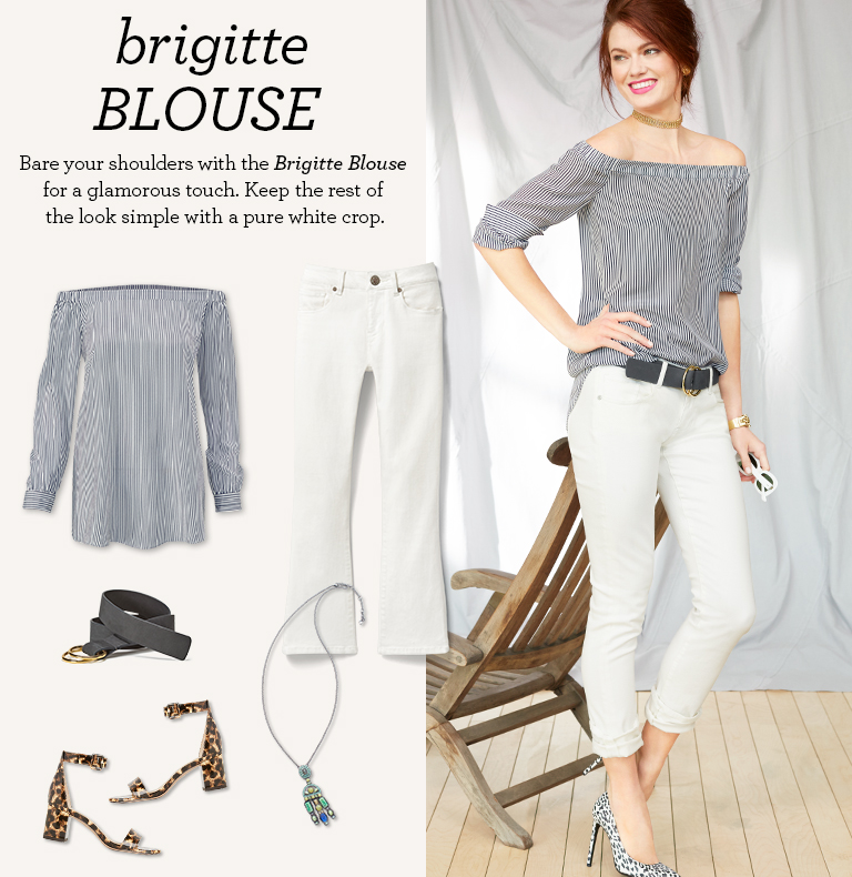 Brigitte Blouse, Kick It Crop, St. Tropez Necklace, Cinch Belt, Ann Taylor Sandal