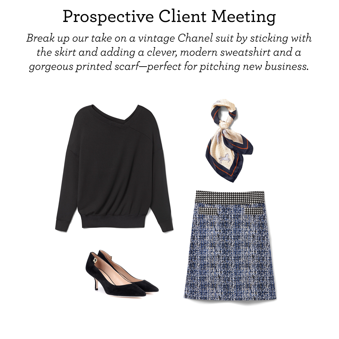 Featured Items: 21 Club Skirt, Beals Sweatshirt, Gallop Scarf, Tory Burch Pump