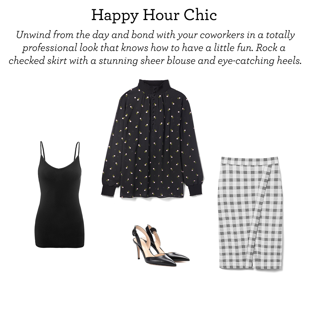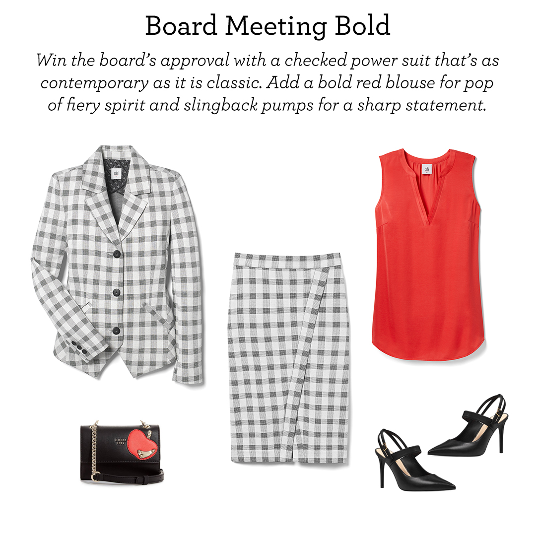 Featured Items: Valentina Blazer, Valentina Skirt, Rose Top, Guess Crossbody, Nine West Slingback Pumps