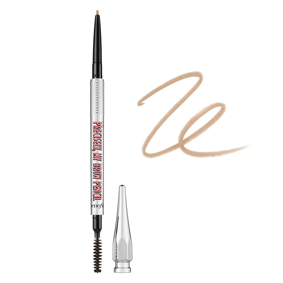 I use the “precisely, my brow” eyebrow pencil from Benefit Cosmetics to draw on my eyebrows. I draw the hairs in, and this pencil is so thin it makes me really look like I have thicker eyebrows when I’m done.
