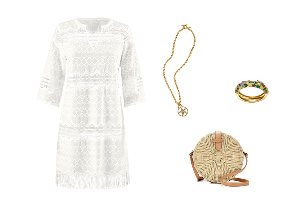 Featured Items: Majorca Cover-Up, Starfish Medallion Necklace, Tide Pool Bracelet, South Beach Bag
