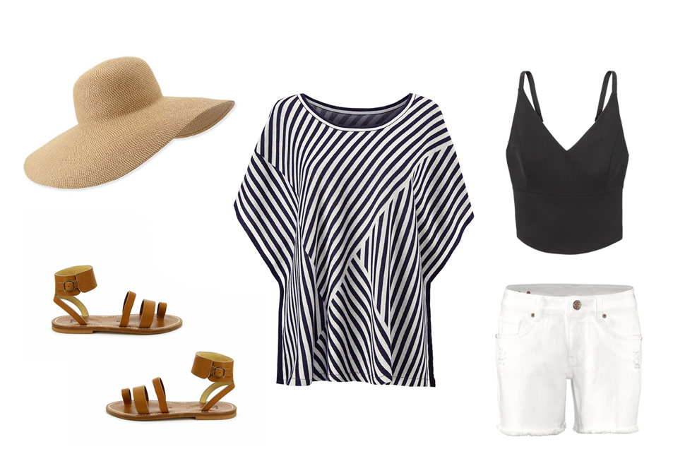 Featured Items: Siesta Poncho, Bralette, Tomboy Short, K. Jacques Sandals, Eric Javits Floppy Hat