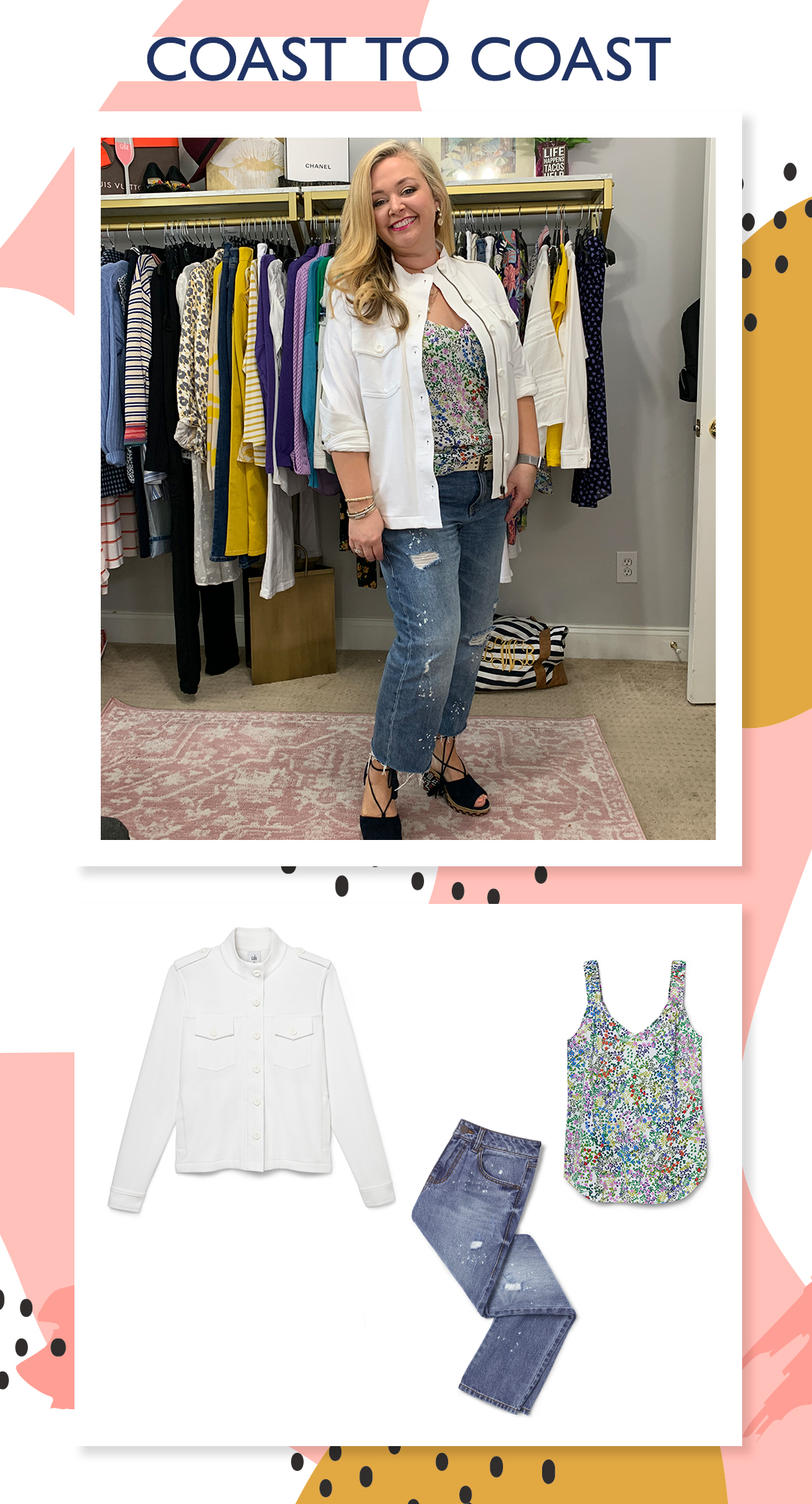 Style Tip: Dial up your style by adding a structured topper to an otherwise casual look. We love the opposition of the destructed 100% Boyfriend jeans against the pristine white Lighthouse Jacket.