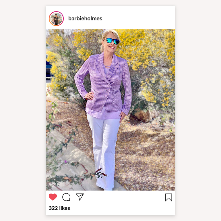 Barbie is showing off her Mother’s Day look, featuring the Imperial Blazer and matching scalloped Cutout Top. This lavender palette instantly stole her heart and looks beautiful when paired back to white denim. Take a look at her post to find out exactly what she loves about each piece!