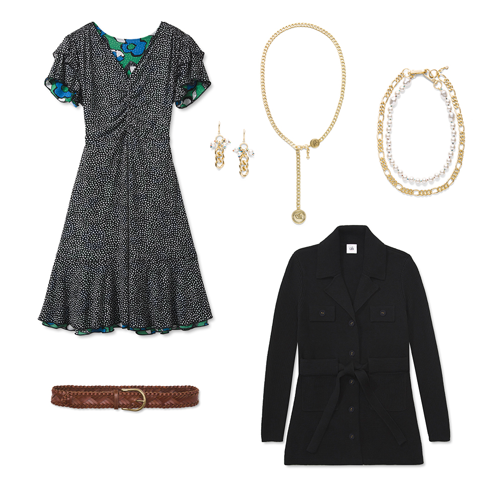 Featured Items: Jackie Cardigan, Celebrate Dress, Plait Belt, Wisdom Earrings, Mission Necklace, Wisdom Necklace